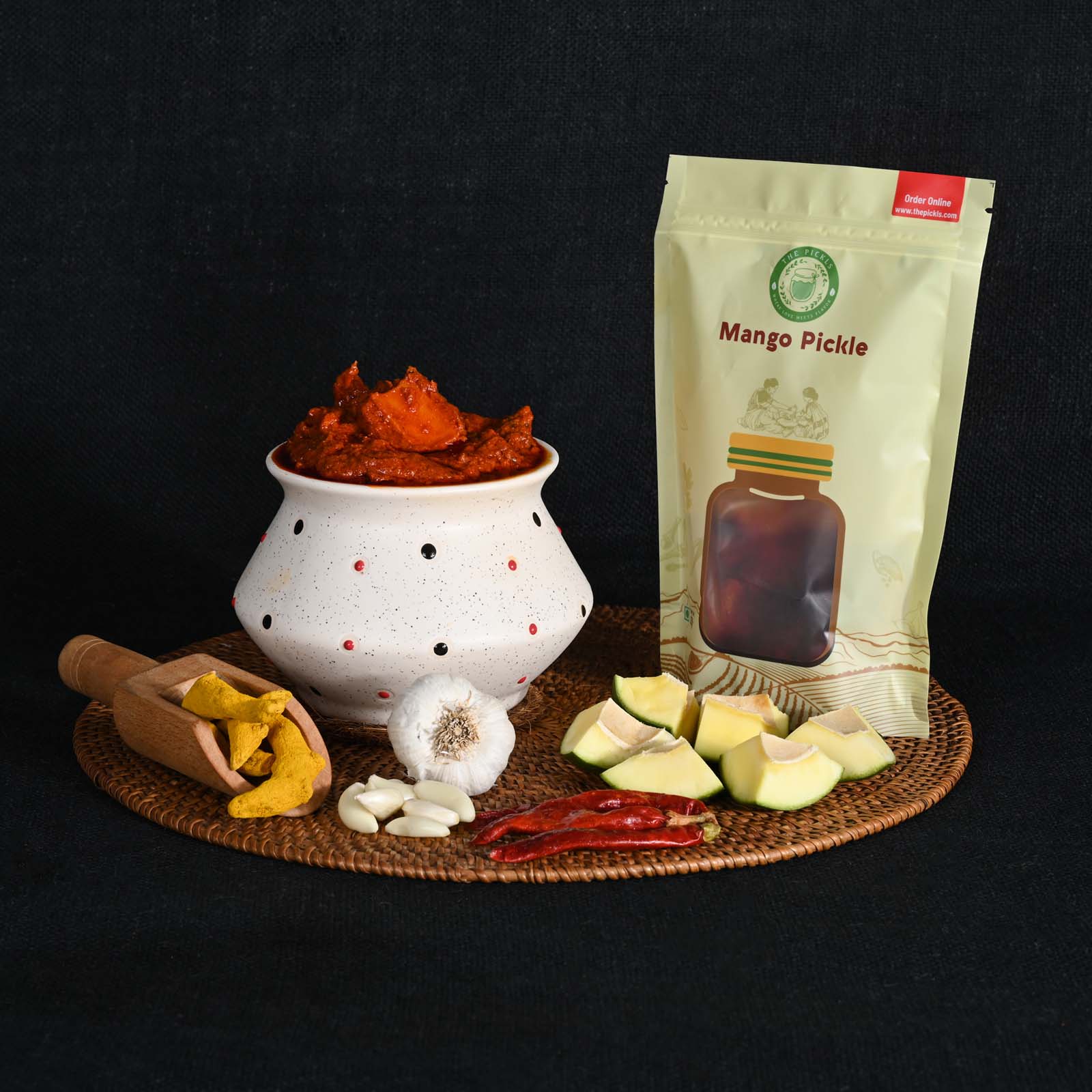 Experience the authentic taste of homemade Andhra Mango Pickle (Avakaya) with a unique blend of spices. Our delicious pickle is crafted from luscious, ripe mangoes, meticulously pickled to create a tangy and flavorful condiment that enhances any dish. Whether you enjoy it as a side or use it to add a zesty twist to your snacks, this homemade pickle is a culinary gem!