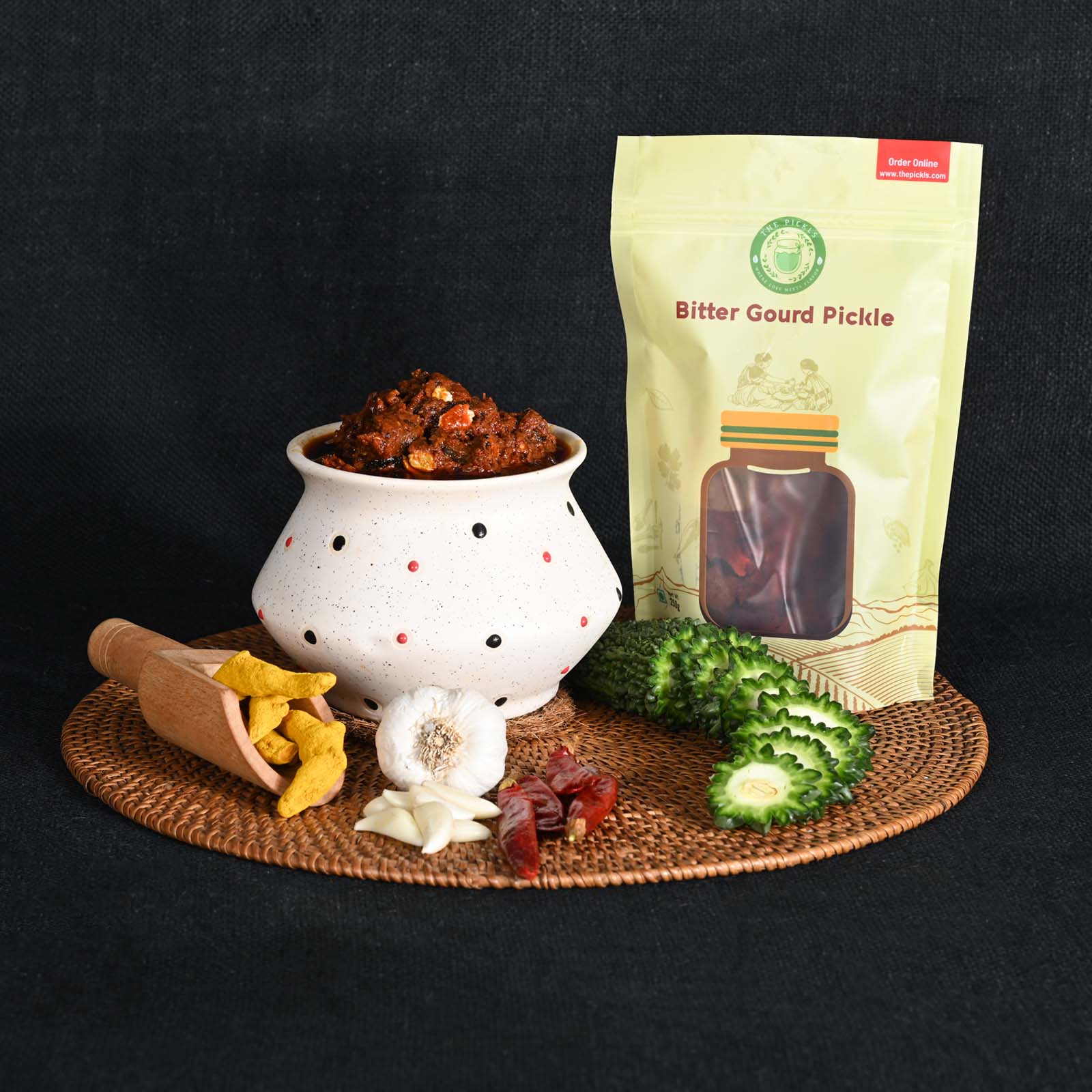 Try The Pickls Bitter Gourd Pickle today. Experience the authentic flavors of Andhra cuisine in your home. Enjoy the vibrant taste and wholesome goodness in every serving!